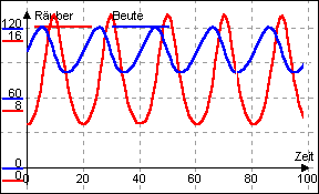 Der Graph zeigt eine typische Räuber-Beute-Kurve, wie sie in unzähligen Abbildungen so oder ähnlich zu finden ist.