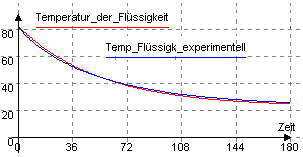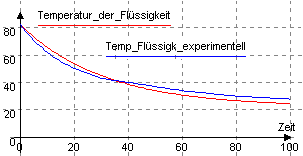 Vergleich zwischen experimentell bestimmter Temperatur einer Flüssigkeit in einer Tasse mit Deckel und der simulierten.